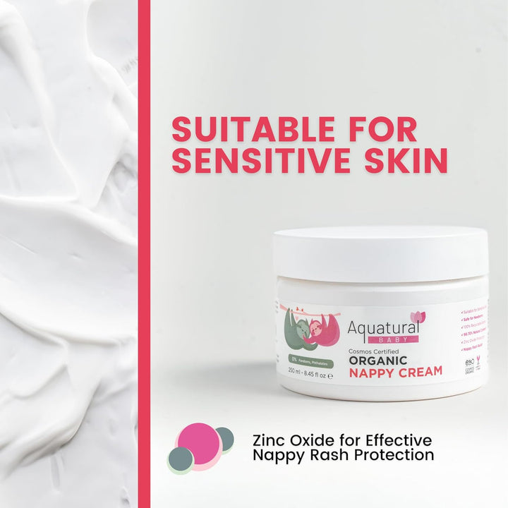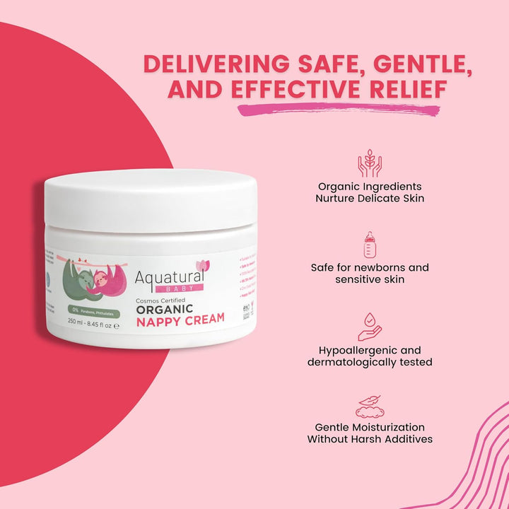 Aquatural Cosmos Certified Organic Nappy Cream provides your baby with the purest and most organic care for their sensitive areas. Its dermatologically tested formula is suitable for newborns. It offers gentle care and protection, leaving your baby's skin feeling soft and comfortable.
